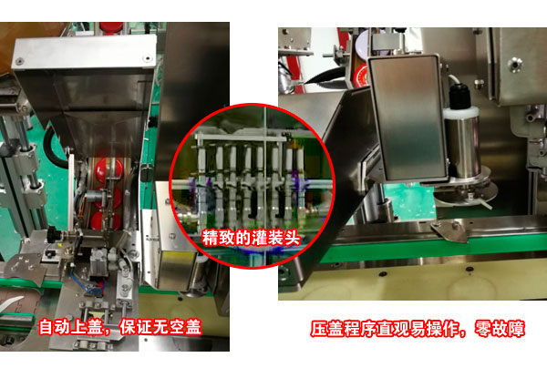 5.更換不同形狀規(guī)格的瓶子灌裝時(shí),不需要更換零件,調(diào)整方便,適用性強(qiáng);